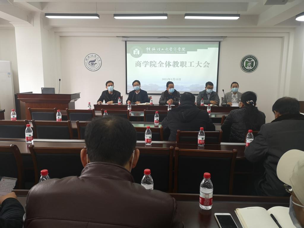 1月15日下午,学院在7309教研室召开全体教职工大会,学校总会计师曾繁荣以及学院全体领导班子和全体教职工参加了会议,会议由学院副院长蒙永亨主持。 首先,由学院领导结合分管业务工作做了工作汇报和部署。沈菲菲副...