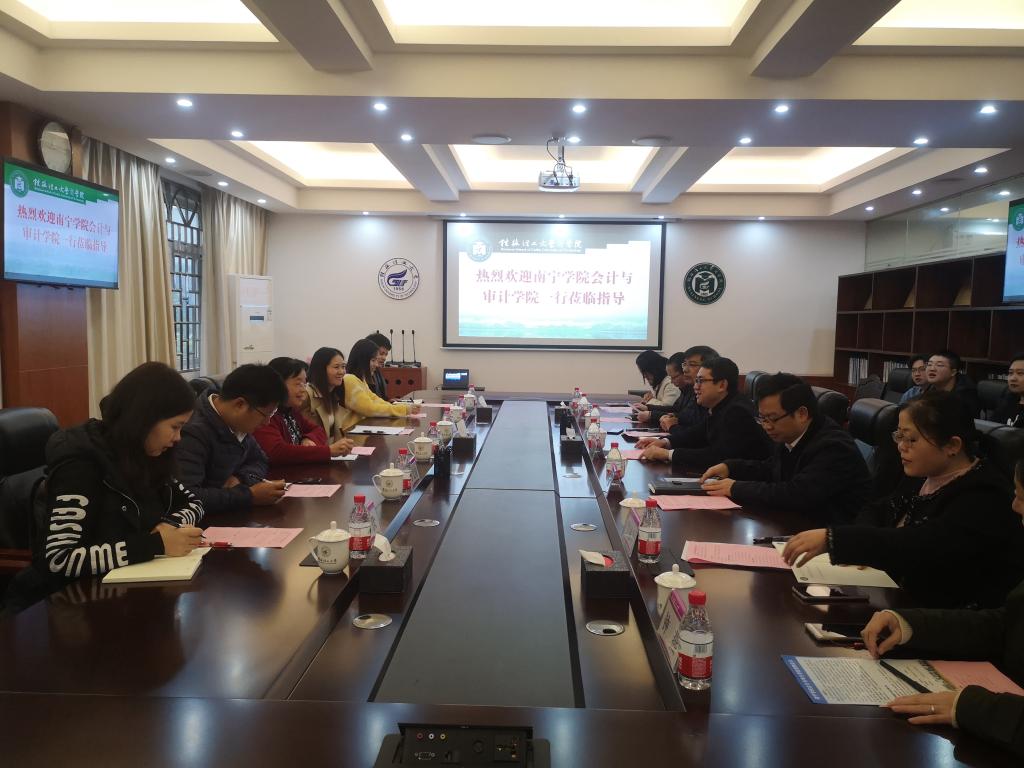 11月16日上午,南宁学院会计与审计学院院长赵海鹰一行来我院考察交流,学院党委书记白永生、副院长蒙永亨、副院长王兴中以及会计教研室相关老师在7206会议室热情接待了来访客人。 首先,双方各自介绍了参会人员。接着...