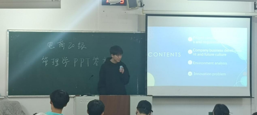 为扎实推进课程建设,着力提高教学质量,12月3日,雁山校区06502教室,学院信管教研室组织2020级电子商务专业学生开展管理学双语课程答辩会。 答辩会上,2020级电子商务专业学生共分成18个团队,每个团队结合课堂所学...