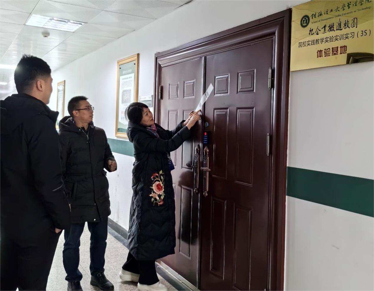 为深入贯彻落实学校2024年寒假安全稳定工作会议精神,切实加强学院寒假和春节期间的安全管理工作,确保校园安全稳定,1月29日下午,学院副院长卢智增、廖帅及相关人员对学院各类场所开展安全专项检查。本次检查主要对实验室、机房、科技智库、学生自习室等场地进行了大排查,重点对消防设施、水电设施、仪器设备、卫生环境等方面进行全方位排查,坚决做到不遗漏、不放过,对存在的问题及安全隐患,做好记录,并及时落实整改。安...