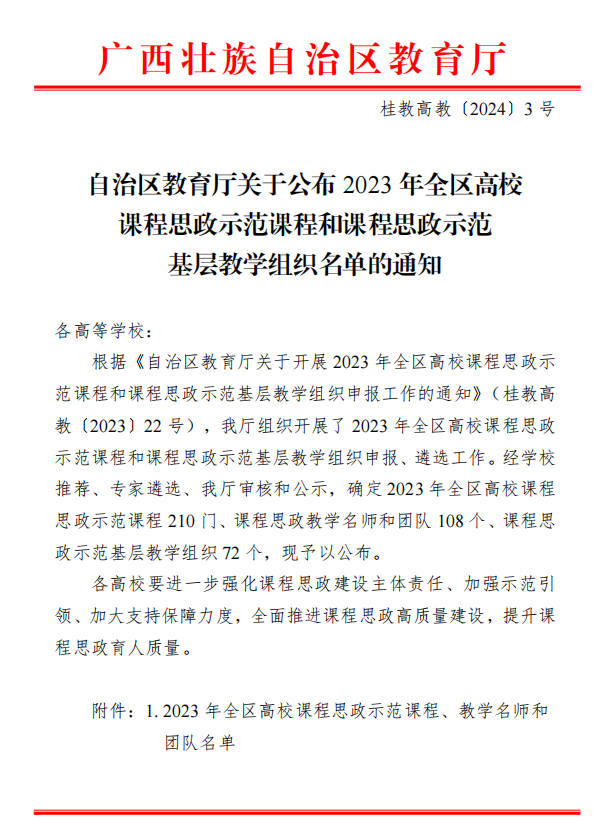 近日,自治区教育厅公布了《自治区教育厅关于公布 2023 年全区高校课程思政示范课程和课程思政示范基层教学组织名单的通知》,我院邓敏慧副教授负责的《跨境电商》课程荣获自治区级课程思政示范课程,获评授课教师和教学团队被认定为自治区级课程思政教学名师和教学团队。全面推进课程思政建设是落实立德树人根本任务、全面提升专业课程育人成效的重要举措。近年来,我院始终坚持把课程思政建设作为落实立德树人根本任务的战略...