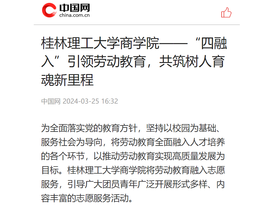 3月25日,中国网以“伟德bv1946——‘四融入’引领劳动教育,共筑树人育魂新里程”为题,宣传报道了我院将劳动教育融入志愿服务,引导广大团员青年广泛开展形式多样、内容丰富的志愿服务活动。原文链接如下:https://t.m.china.com.cn/convert/c_yyJrlOWy.html伟德bv1946——“四融入”引领劳动教育,共筑树人育魂新里程为全面落实党的教育方针,坚持以校园为基础、服务社会为导向,将劳动教育全面融入人才培养...