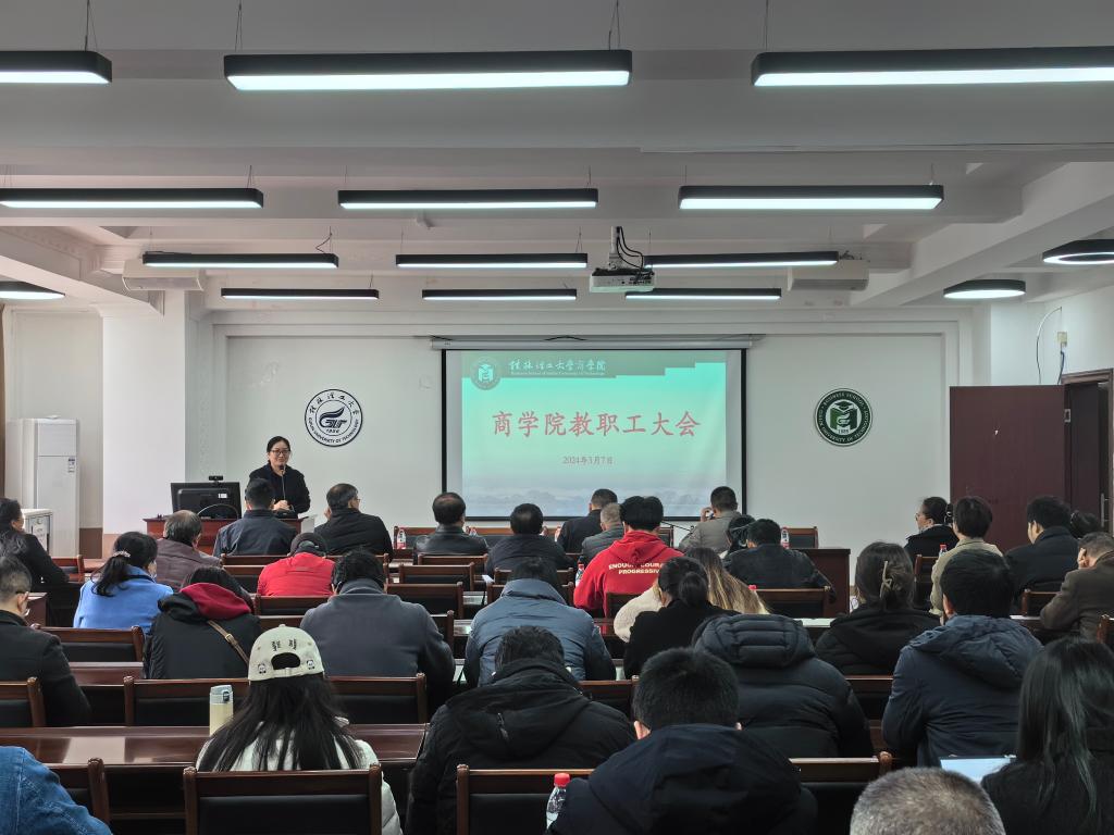 3月7日下午,学院于屏风校区7309会议室召开2024年春季学期全体教职工大会。学院领导班子、全体教职工参加会议,会议由学院党委书记白凌婷主持。会上,全体教职工集中观看了全国优秀教师代表“教育家精神”2024年巡回宣讲(广西站)视频。自治区级课程思政示范课程团队负责人邓敏慧副教授分享了自己的课程建设经验。学院党委副书记、纪委书记饶蠡,副院长王兴中、卢智增、廖帅分别就2024年各自的分管工作做了工作安排。李雷院长...