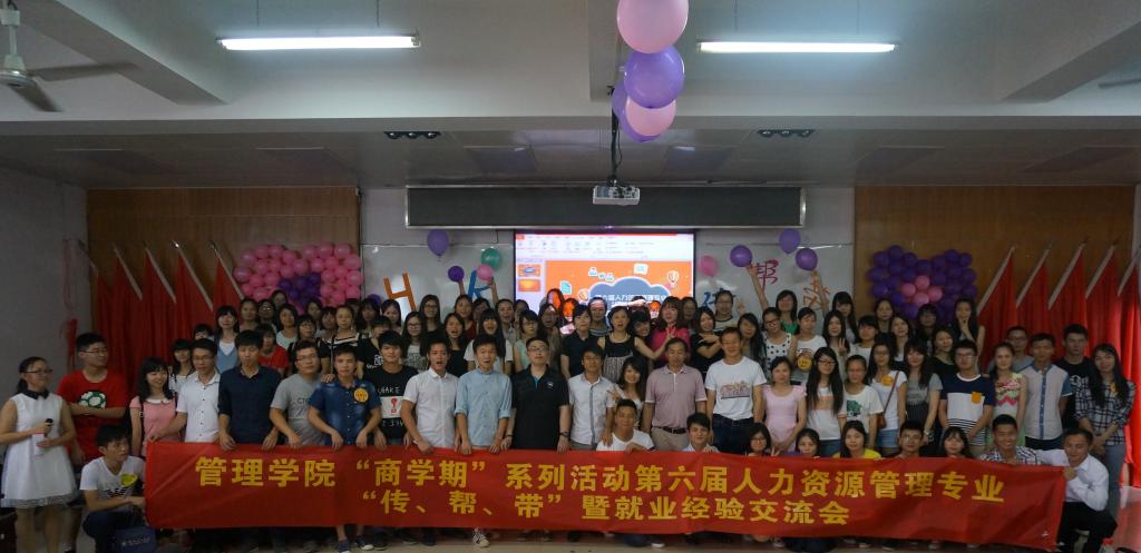 第六届人力资源管理专业“传帮带”暨就业经验交流会圆满闭幕 2015年6月7日上午,管理学院人力资源管理专业学生在学校教职工活动中心五楼举行了传帮带活动暨就业经验交流会。传帮带活动是人力...